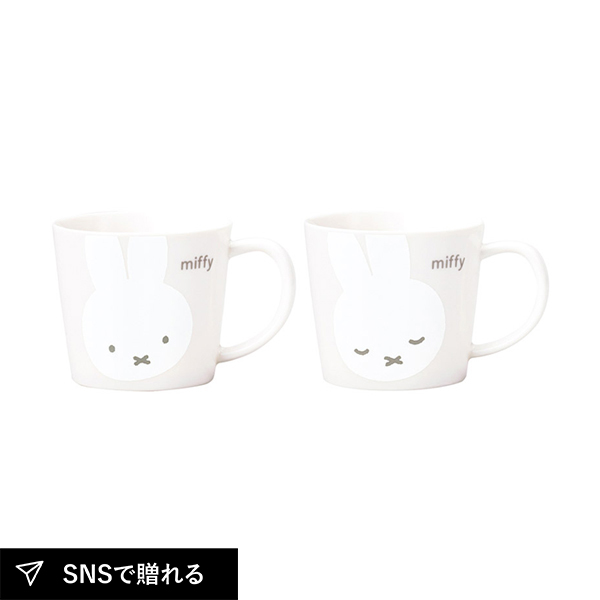 ミッフィーの白いお顔が可愛いペアマグセット。通常のミッフィーと寝ているミッフィーの2種類の柄が楽しめます。淡い色合いで子どもから大人まで幅広く使っていただけるアイテム。。ちょっとしたプレゼントにもぴったりなセットです。