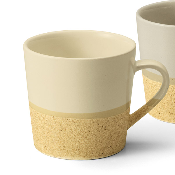 手に取った瞬間、ざらりと心地よい質感。本物のコルクを思わせる温かみのある風合い。淡くやさしい色合いのセミマットの釉薬がサラリと包み込み、静かな上品さを添えます。異なる質感が一つに溶け合い、見て、触れて、毎日の何気ないひとときを豊かにしてくれます。