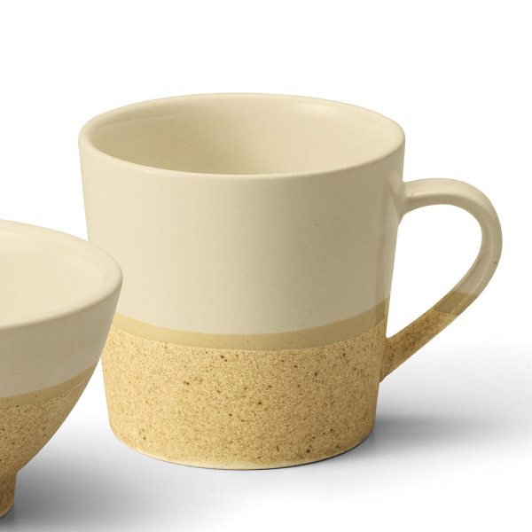 手に取った瞬間、ざらりと心地よい質感。本物のコルクを思わせる温かみのある風合い。淡くやさしい色合いのセミマットの釉薬がサラリと包み込み、静かな上品さを添えます。異なる質感が一つに溶け合い、見て、触れて、毎日の何気ないひとときを豊かにしてくれます。
