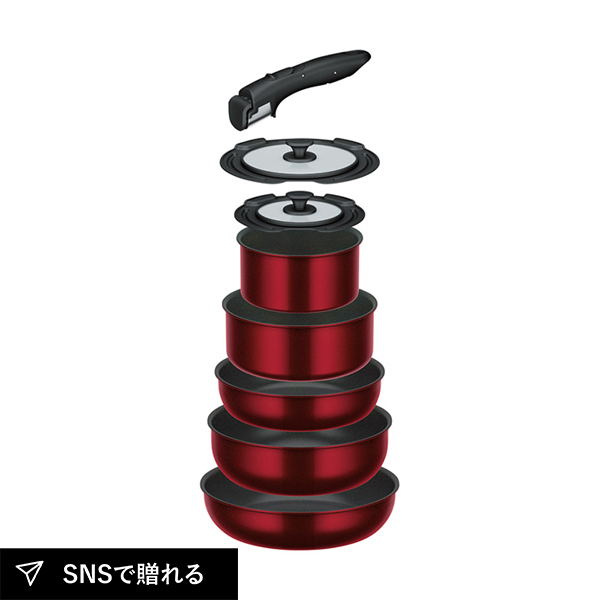 | フライパン22cm(約235×235×60mm)・フライパン26cm(約275×275×65mm)・炒め鍋24cm(約3.4l)(約255×255×80mm)・鍋16cm(約1.8l)(約175×175×85mm)・鍋20cm(約2.7l)(約215×215×85mm)・取っ手・フタ16cm・フタ20cm×各1 |