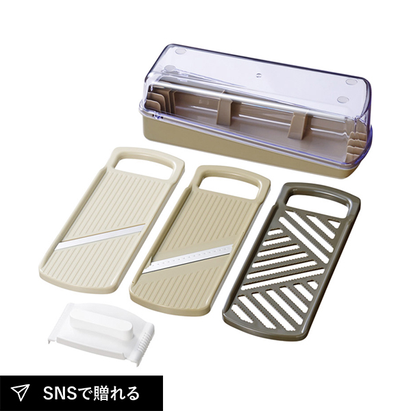 | 本体(約235×85×88mm)・収納ケース・容器・スライサー・千切り・おろし・安全ホルダー×各1 |