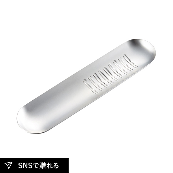 トレーのようなモダンデザインなので、そのままテーブルに出しても素敵です。ワサビやしょうがなどの薬味を卓上ですりおろし、新鮮なまま料理に添えることができます。周囲にカーブをつけたトレー形状でこぼれにくく、汁物などには薬味を溶かしながら入れることができます。