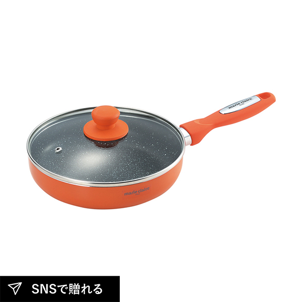 「マリ・クレール カラーズ」は、内面マーブルフッ素樹脂加工でお手入れ簡単なアルミ製調理器具。軽量で調理の負担が少なく、ハンドルはシリコン塗装で滑りにくく手に馴染みます。日常使いやギフトに最適な使いやすいアイテムです。