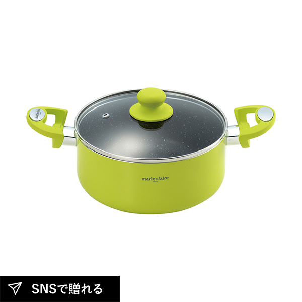 「マリ・クレール カラーズ」は、内面マーブルフッ素樹脂加工でお手入れ簡単なアルミ製調理器具。軽量で調理の負担が少なく、ハンドルはシリコン塗装で滑りにくく手に馴染みます。日常使いやギフトに最適な使いやすいアイテムです。