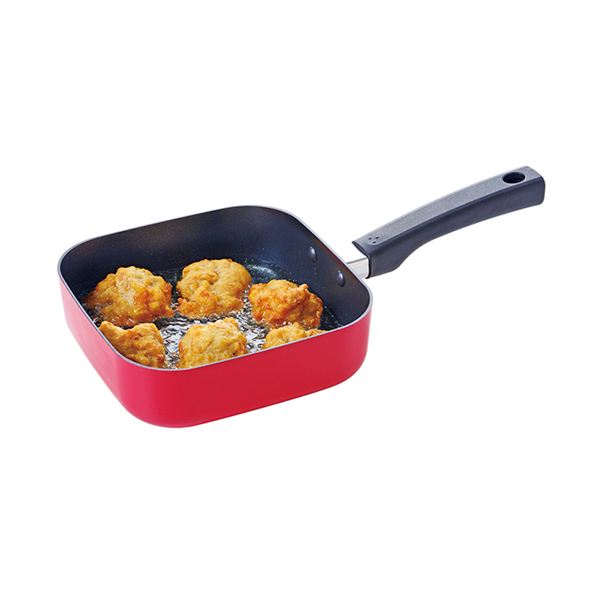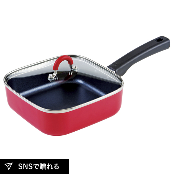 軽量でお手入れ簡単なふっ素樹脂加工のスクエア型フライパン。少し深めの形状とガラス蓋付きで調理中の様子も確認でき、日常の調理から幅広いメニューに便利に使える使いやすいサイズ感が魅力です。