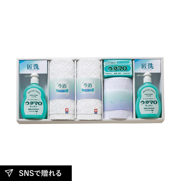 ガンコな汚れもしっかり落とすウタマロ洗濯石鹸と、手肌の潤いを守りながら油汚れをスッキリ落とすキッチン洗剤、タオルやクロスをセットにしました。日々の家事を快適にする贈り物として最適です。
