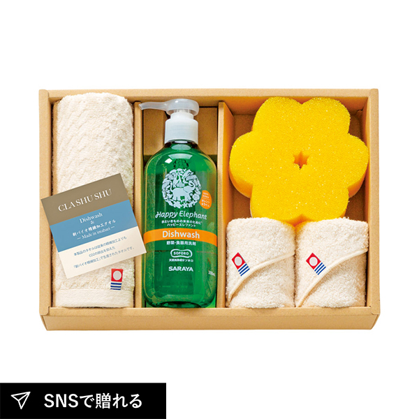 | 食器用洗剤オレンジ&ライムの香り(300ml)・ウォッシュタオル(340×300mm)・スポンジ×各1、タオルハンカチ(220×220mm)×2 |