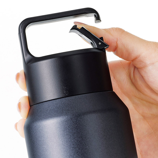 炭酸飲料を冷たいまま持ち運べる、真空2重構造のステンレスボトル。蓋部分のガス抜き構造により、ビール、炭酸水などを冷たいまま持ち運び可能。氷を入れても500mlドリンクが入る、大容量600mlサイズ。