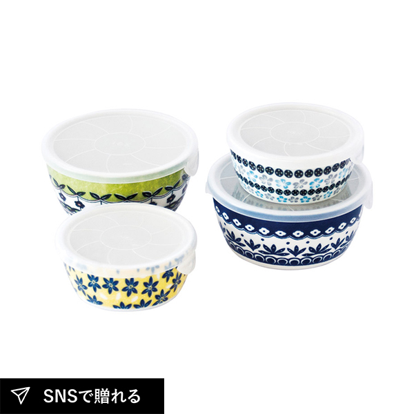 フタをしたまま電子レンジOK。器としてそのままテーブルに並べれば、食卓がオシャレに彩られます。大小4つの容器で料理や副菜、デザートなどさまざまなものを保存できます。食洗機対応でお手入れも簡単ラクラク。