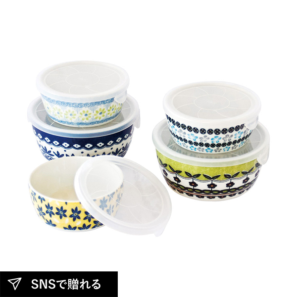 フタをしたまま電子レンジOK。器としてそのままテーブルに並べれば、食卓がオシャレに彩られます。大小5つの容器で料理や副菜、デザートなどさまざまなものを保存できます。食洗機対応でお手入れも簡単ラクラク。