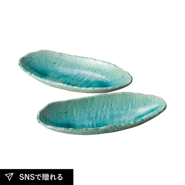 瀬戸焼 ブルー貫入 舟型鉢2P