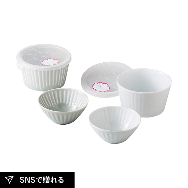 | ノンラップ鉢:器:磁器、レンジ蓋:ポリプロピレン、小付:磁器 |