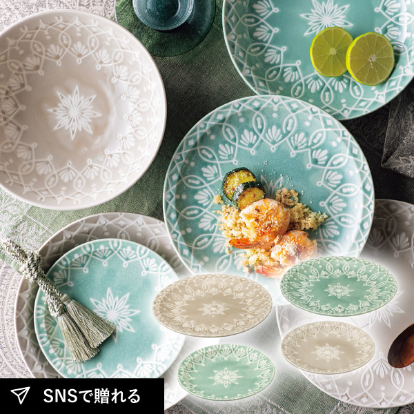夜空に広がる星々が織りなす星空のように、繊細な幾何学模様を描いたテーブルウェア。東洋のエキゾチックさに西洋のエッセンスを融合したことで盛り付けるお料理を選ばず、日本の食卓に取り入れやすいようにデザインしました。