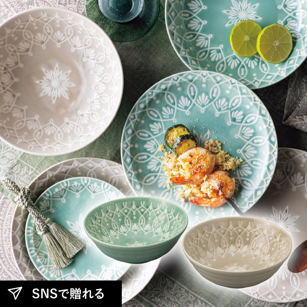 夜空に広がる星々が織りなす星空のように、繊細な幾何学模様を描いたテーブルウェア。東洋のエキゾチックさに西洋のエッセンスを融合したことで盛り付けるお料理を選ばず、日本の食卓に取り入れやすいようにデザインしました。