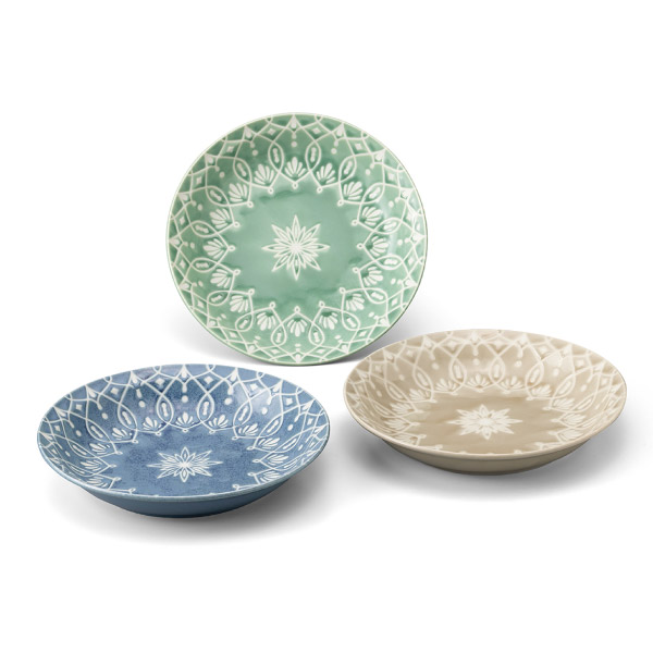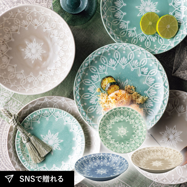 夜空に広がる星々が織りなす星空のように、繊細な幾何学模様を描いたテーブルウェア。東洋のエキゾチックさに西洋のエッセンスを融合したことで盛り付けるお料理を選ばず、日本の食卓に取り入れやすいようにデザインしました。