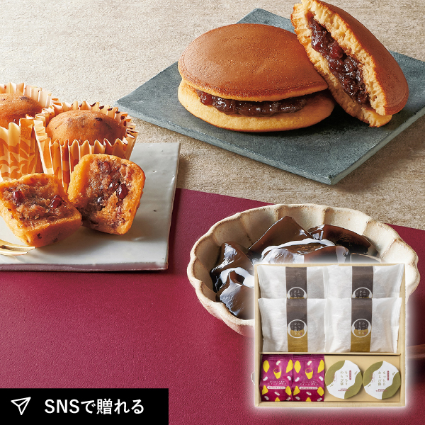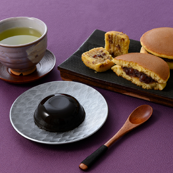 | ふっくらどら焼き×4個、もっちりわらび餅×2個、ほくほく小豆のスイートポテト×2個 |