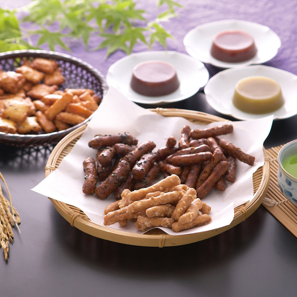 昔ながらの素朴な味わいのかりんとうをはじめ、懐かしさを感じる美味しい和菓子を詰め合わせました。さらに、夏でも冬でも楽しめるまろやかな羊かんと、国産米だけで作った3種類のあられを一緒にお楽しみいただけるセットです。