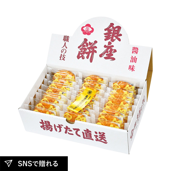 香ばしく焼き上げた餅生地に、上品な旨みを閉じ込めた「銀座餅」。特製の甘辛醤油で仕上げた、大判のお煎餅です。日常のお茶請けにはもちろん、大切な方への贈り物にもふさわしい、職人のこだわりが詰まった逸品です。