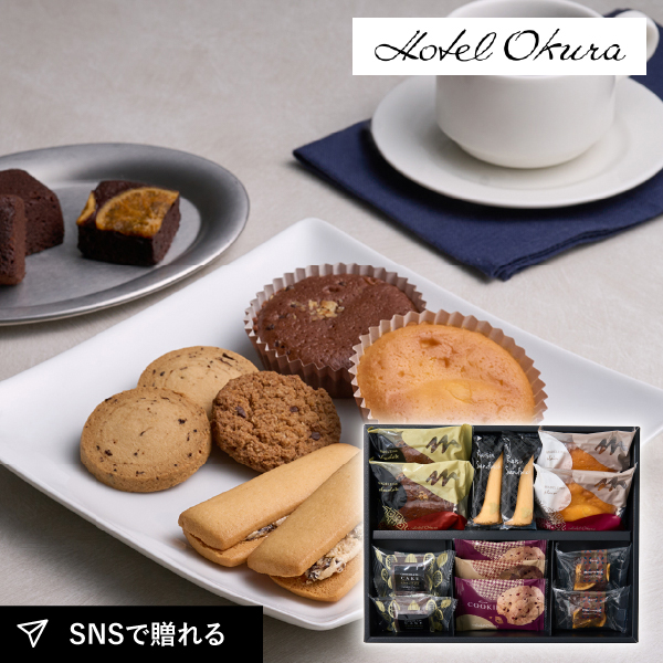 ホテルオークラの焼菓子の詰合せ。チョコレートを使用したブラウニー、しっとりした焼きあがりのマドレーヌなどさまざまな焼菓子を取り揃えているのにも、選ぶ、味わう楽しさを届けたいというおもてなしの心を感じて頂けるセットとなっています。