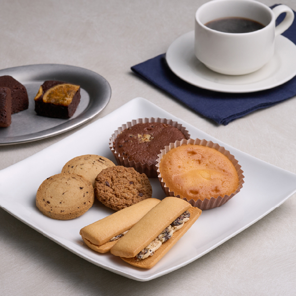 | レーズンクッキー・チョコチップクッキー×各3個、ブラウニーネーブル・レーズンサンド・マドレーヌ(プレーン・チョコ)・チョコレートケーキ×各2個 |