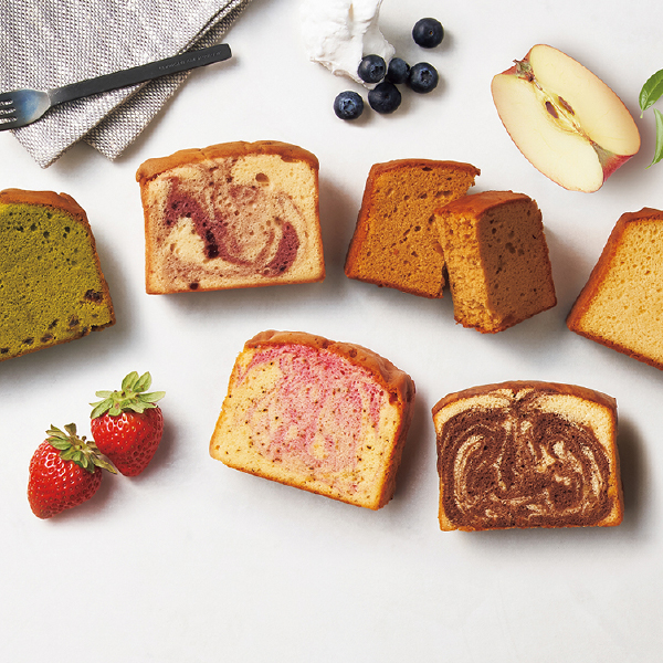 フルーツを混ぜ込んだ大きなしっとりパウンドケーキです。ずっしりとしたサイズ感ですが、ふんわり軽い食感で意外にぺろりと食べられます。朝食代わりやデザートにも。フルーツとフレーバーが組み合わさったそれぞれの味わいをお楽しみください。