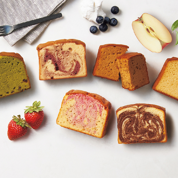 フルーツを混ぜ込んだ大きなしっとりパウンドケーキです。ずっしりとしたサイズ感ですが、ふんわり軽い食感で意外にぺろりと食べられます。朝食代わりやデザートにも。フルーツとフレーバーが組み合わさったそれぞれの味わいをお楽しみください。