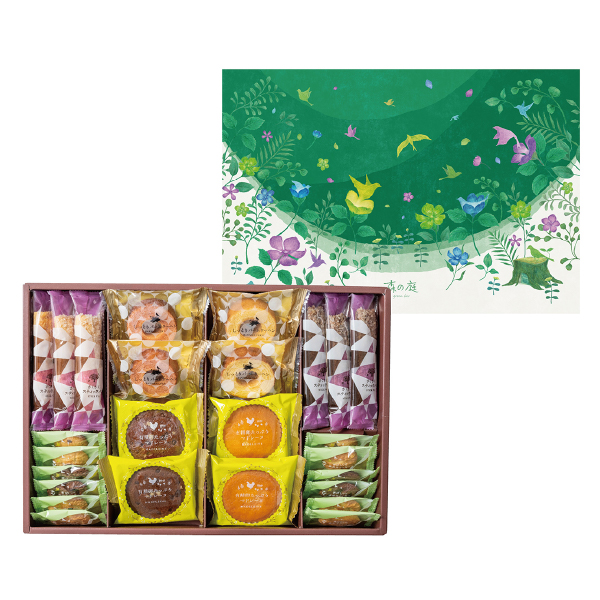 美しい森の中で、色とりどりの花たちと鳥たちがさえずる、森の詩のお菓子。切り株のしっとりバーム、森の枝のさくさくパイなど、森の詩を奏でる焼き菓子を、色鮮やかに描かれた不思議の森のデザインボックスに詰め込みました。受け取った瞬間に心の中に現れる癒しの場所と素朴で優しいスイーツをお届けします。