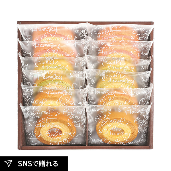 | 2層バームクーヘン(キャラメル&ミルク・ストロベリー&ミルク・抹茶&ミルク)(30g)×各4 |