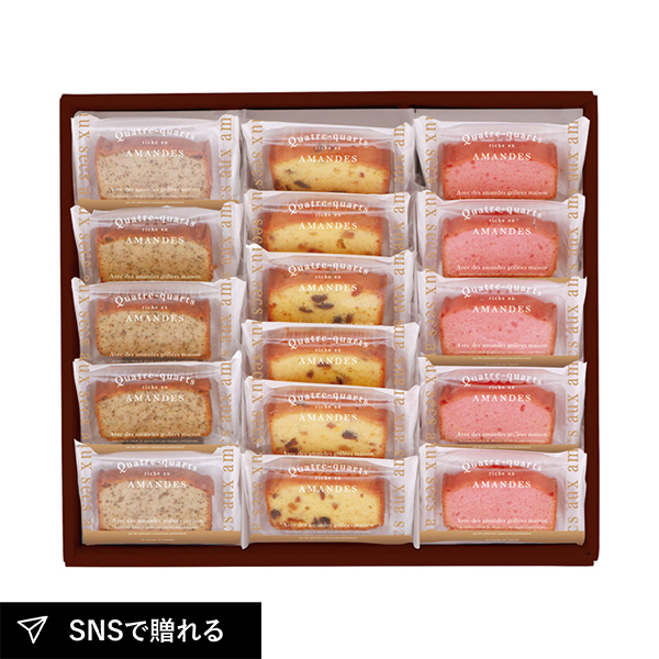菓子職人が丁寧に自家挽きしたアーモンドを使ってつくったパウンドケーキ生地を、しっとりとした口あたりになるように焼き上げました。アーモンドならではのリッチな味わいをお楽しみいただけます。