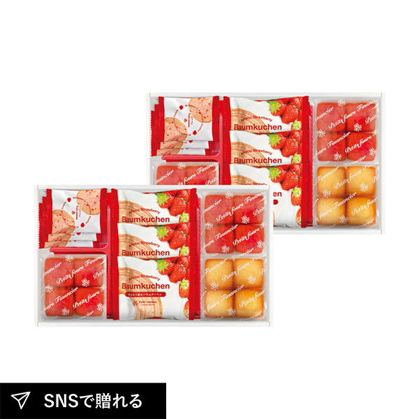 | あまおう苺バウムクーヘン・焼きほろろクッキー(イチゴ)×各6、プチフィナンシェ4個入(あまおう苺)×4、プチフィナンシェ4個入(プレーン)×2 |