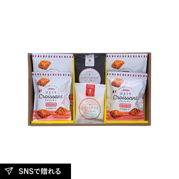| ひとくちクロワッサン×4、ひとくちクッキー(バニラ・チョコ)×各1 |