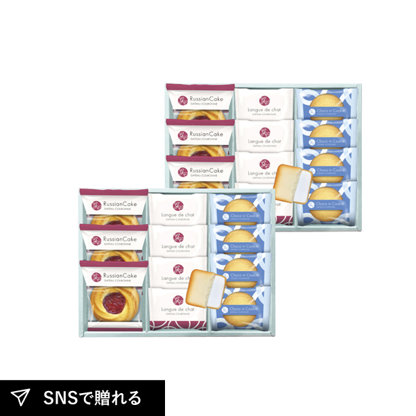 | ロシアケーキブルーベリーサン×6、ラングドシャ・チョコインクッキー×各8 |