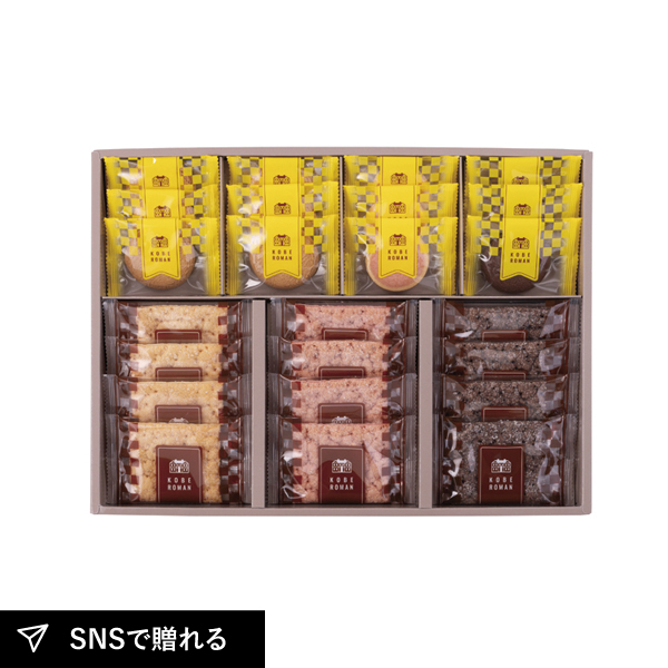 スクエアの形をしたサクサクのパイと、口どけの良いクッキーを詰め合わせました。クッキーはプレーン・ココア・フランボワーズの3種類、パイはプレーン・ストロベリー・ショコラの3種類で味も見た目も喜ばれます。