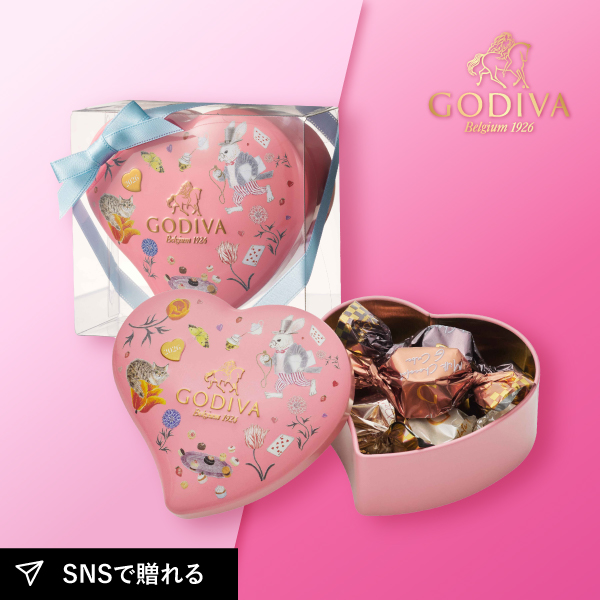GODIVA アリスのティーパーティ G キューブ アソートメント ミニハート缶(5粒入)