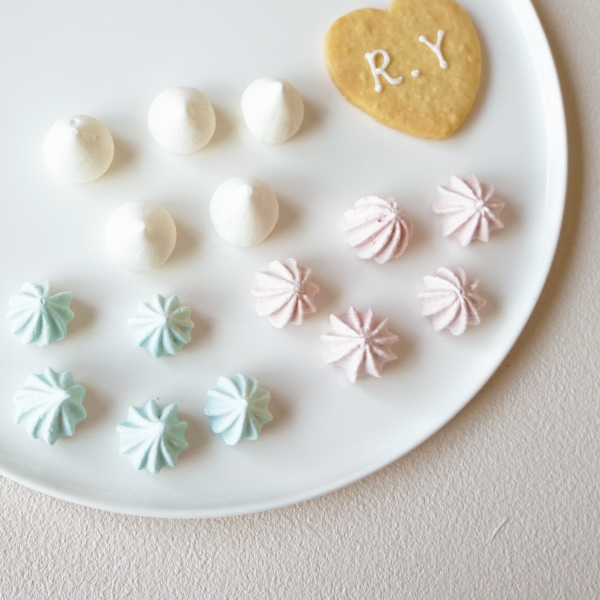 | クッキー1枚、メレンゲクッキー3種(プレーン・苺・バタフライピー)8〜10個(各6g〜8g) |