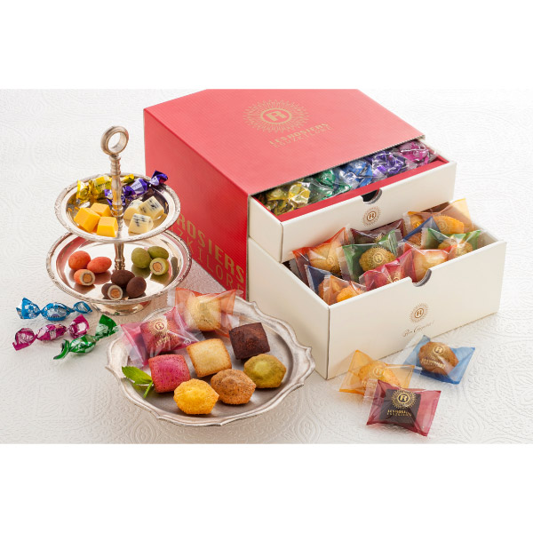 | フィナンシェ(プレーン・ショコラ・フランボワーズ)×各7、マドレーヌ(ピスタチオ・アールグレイ・マンゴー)×各7(計42)、プチショコラ(ストロベリー・マンゴー・レーズン・ティラミス・抹茶)×各9(計45) |
