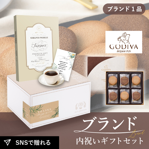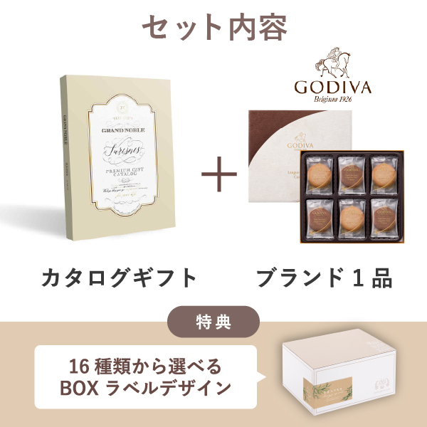 ブランド内祝いギフトセット ギフトボックス(カタログギフト グランノーブル シュレンヌ+GODIVAクッキー)