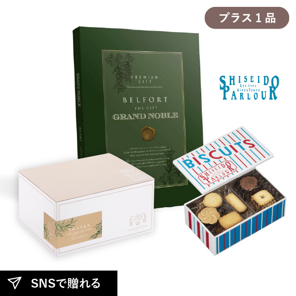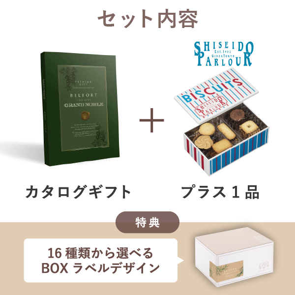 内祝いギフトセット ギフトボックス(カタログギフト グランノーブル ベルフォール+資生堂パーラー ビスキュイ 20枚入)