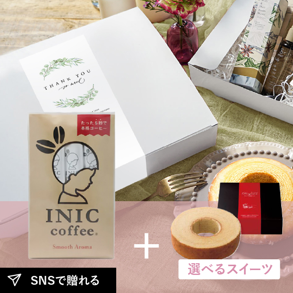 可愛らしいギフトボックスにINIC coffee(イニックコーヒー)と人気スイーツを詰め合わせました。コーヒー好きの方に喜ばれるギフトセットです。
