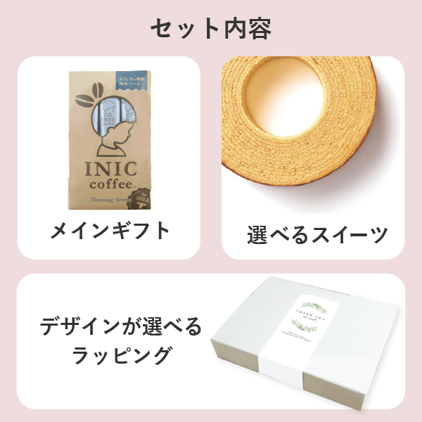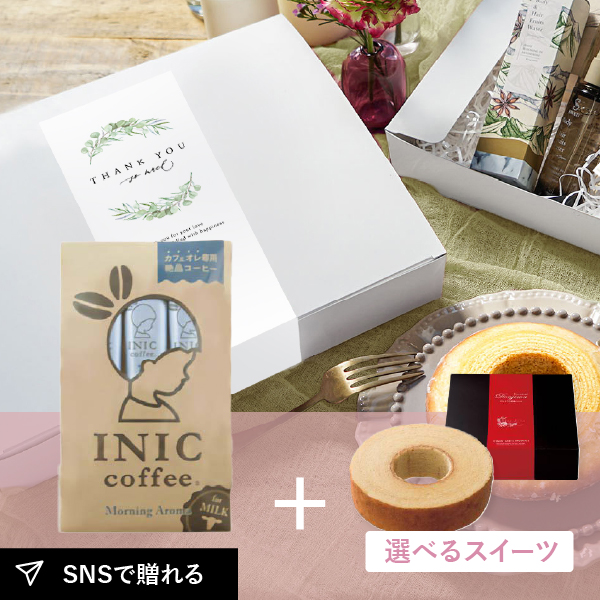 可愛らしいギフトボックスにINIC coffee(イニックコーヒー)と人気スイーツを詰め合わせました。コーヒー好きの方に喜ばれるギフトセットです。