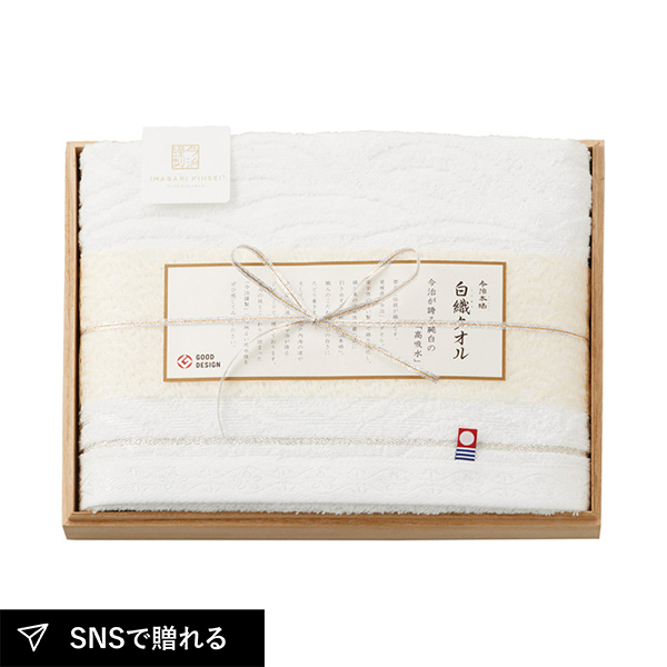 高吸水と白さ際立つ細部へのこだわりを追求した「今治本晒」。今治の自然の美からとったデザインを高い技術で表現しました。品のある木箱入りギフトなので、目上の方や大切な方へのプレゼントにもおすすめです。
