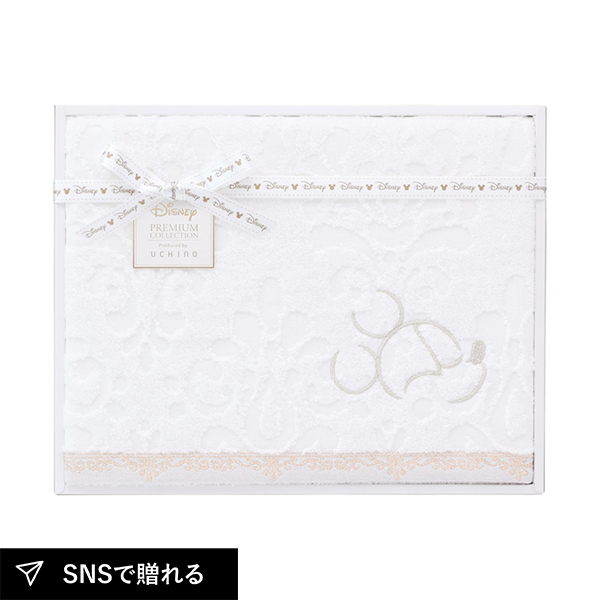 ミッキーとミニーのラメ刺しゅうが上品に彩るバスタオル。柔らかな肌触りと高い吸水性で日常使いも快適に。エレガントで華やかなデザインは、特別な贈りものとしても喜ばれる逸品で、大切な方へのタオルギフトとして最適です。