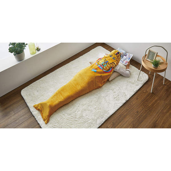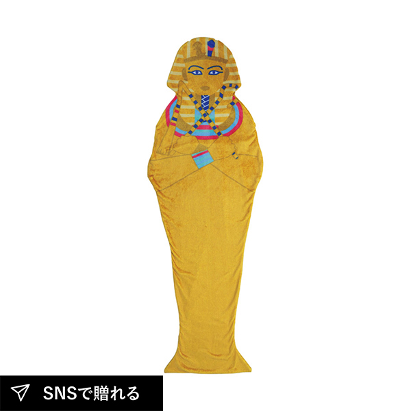 ツタンカーメンをモチーフにした遊び心あふれるマーメイドブランケット。ユニークで個性的なデザインはインパクト抜群で、お部屋でのくつろぎ時間を楽しく演出。遊び心のあるギフトとして、大切な方への贈りものにぴったりです。