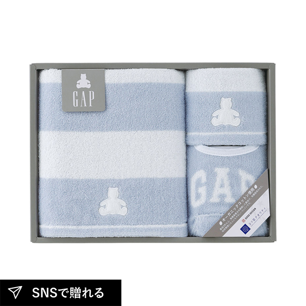 クラシックモダンなGAPベビーセット。バスタオル、ウォッシュタオル、スタイの3点が揃い、毎日のケアに便利で実用的。ブルーカラーで爽やかな印象を添え、出産祝いなど赤ちゃんへの特別なギフトとして喜ばれるおしゃれなセットです。