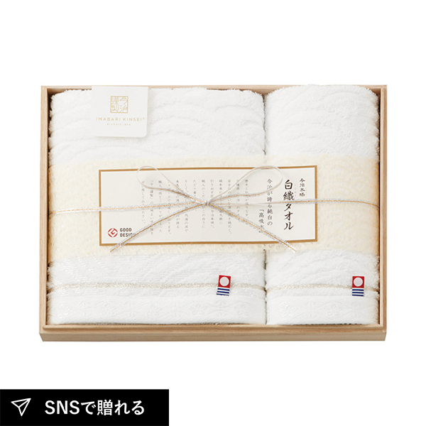 高吸水と白さ際立つ細部へのこだわりを追求した「今治本晒」。今治の自然の美からとったデザインを高い技術で表現しました。品のある木箱入りギフトなので、目上の方や大切な方へのプレゼントにもおすすめです。