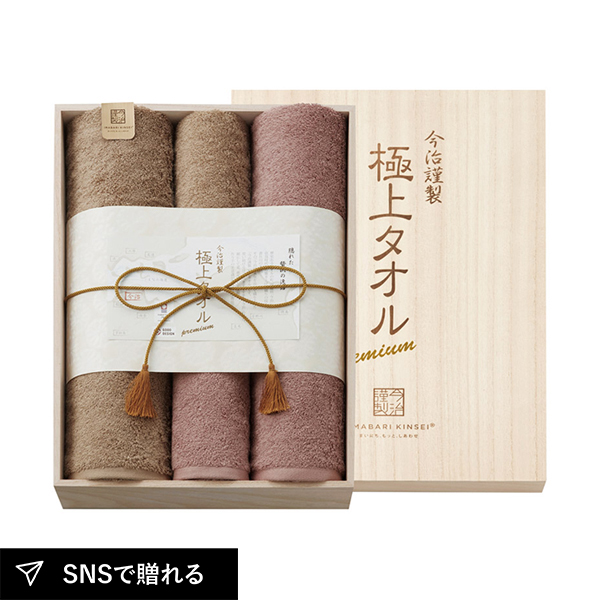 シックで大人な色合いと高品質のコットンを使用し、繊細な繊維1本1本で上質な肌ざわりを生み出した「極上タオル」。高級感のある木箱に入れてお届けするので、大切な方への特別な贈り物に最適です。
