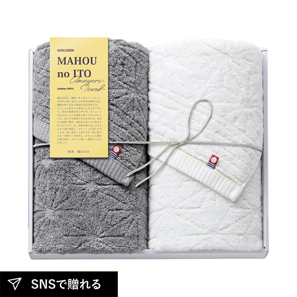 洗うたびに柔らかさが増す今治極選「魔法の糸」フェイスタオル2枚セット。世界初の特殊糸を使用し、肌触りの良さと吸水性を両立。日常使いはもちろん、上品なギフトとしても最適な、贅沢感あふれるタオルセットです。