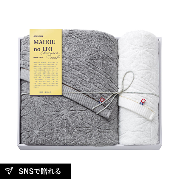 世界初の特殊糸を使用した今治極選「魔法の糸」のバスタオルとフェイスタオルのセットです。洗うたびに柔らかさが増す上質な肌触りで、毎日のバスタイムを贅沢に彩ります。日常使いはもちろん、特別な贈り物としても喜ばれる、高級感あふれるタオルギフトです。