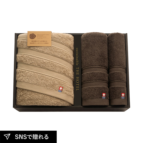バスタオル・フェイスタオル・ゲストタオル各1枚を揃えた愛媛今治のホテル仕様タオルセット。厚みと柔らかさを兼ね備え、太陽光発電で織られるサステナブルな製法も魅力です。日常使いはもちろん、上質感あふれるギフトとして贈れば、特別なひとときを演出できる逸品です。