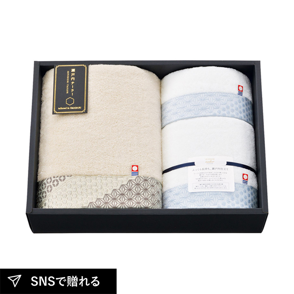 バスタオル・フェイスタオル・ウォッシュタオル各1枚のセット。柔らかく長持ちする瀬戸内仕立てのタオルに、亀甲・籠目・七宝模様の上品なデザインを施し、日常使いはもちろん、特別な贈り物としても喜ばれる上質なタオルセットです。